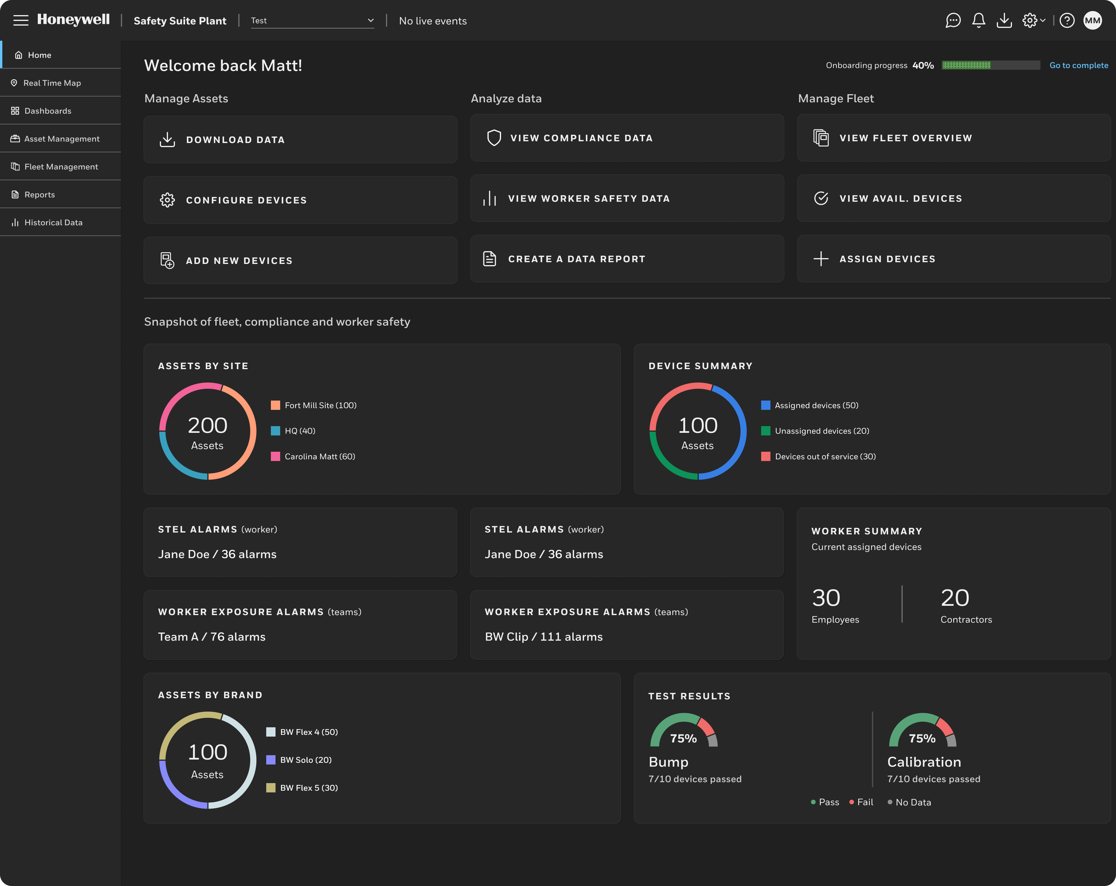 Enterprise Worker Safety (EWS) is Honeywell’s next-generation implementation of Safety Suite. The design goal is to transition a fragmented legacy gas-detection ecosystem into an intelligent, connected platform for industrial workers, safety managers, and technicians. It focuses on seamless device setup, device/fleet management (including check-in/check-out), and compliance assurance that is powered by trusted UX patterns, connectivity and AI that assists every aspect of a complex workflow.