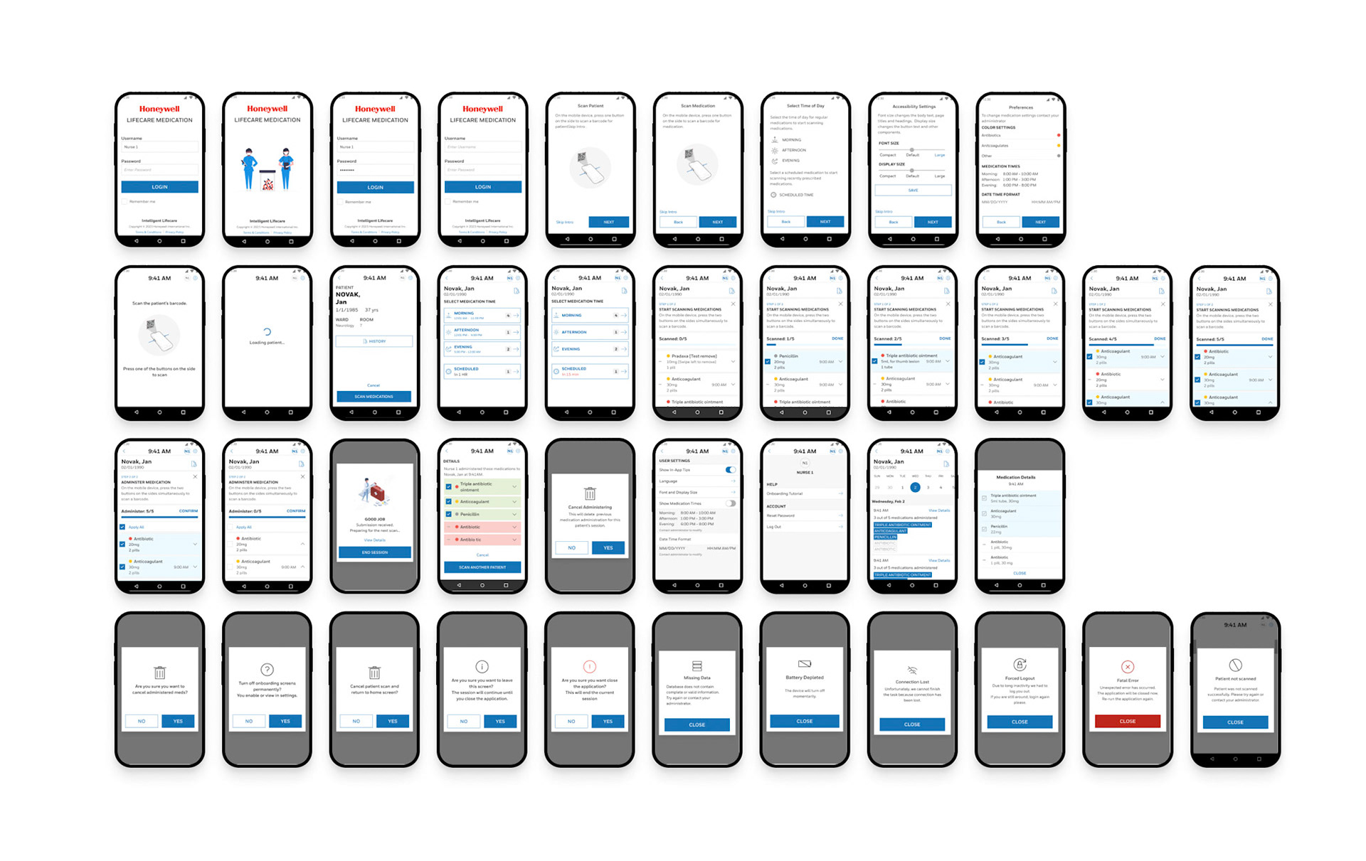 The ILC Medication App was designed for Honeywell’s Integrated Life Care division to ensure safer and more efficient medication administration in clinical environments. Nurses and technicians rely on Honeywell handheld devices to scan patient wristbands and medication barcodes—helping them confirm dosage, timing, and compliance at the bedside.