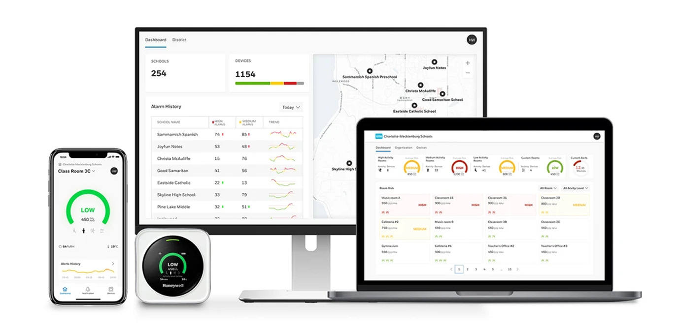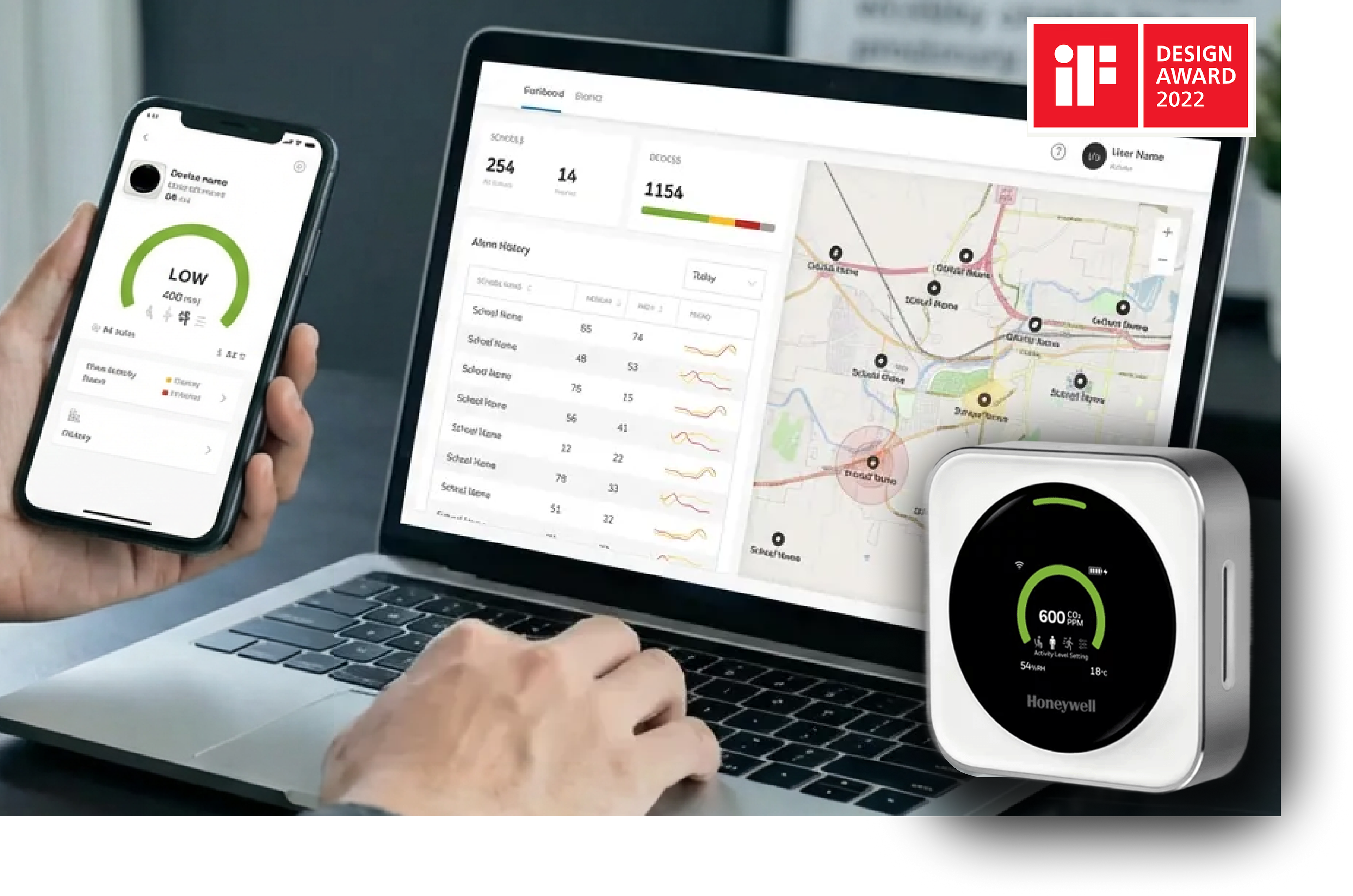 The project established foundational UX patterns for Honeywell air monitoring devices in educational environments, and the TRAM product was adopted in pilot school / building settings within Honeywell. The system’s integration with Honeywell's BMS (e.g. Niagara) allowed automated ventilation adjustments — turning red alerts into active mitigation (this is documented publicly in a press release for the Charlotte Headquarters)
