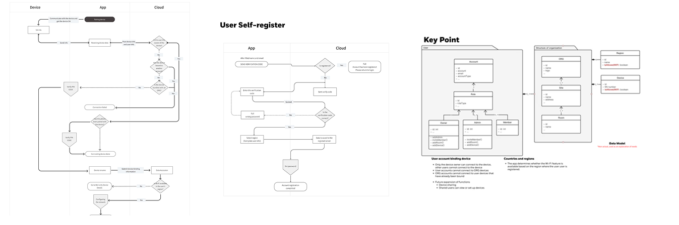 • Workflows for adding a device by Bluetooth for brand new devices without an owner, device access requests from users that don't have permission, device access requests from users that do have permission.
