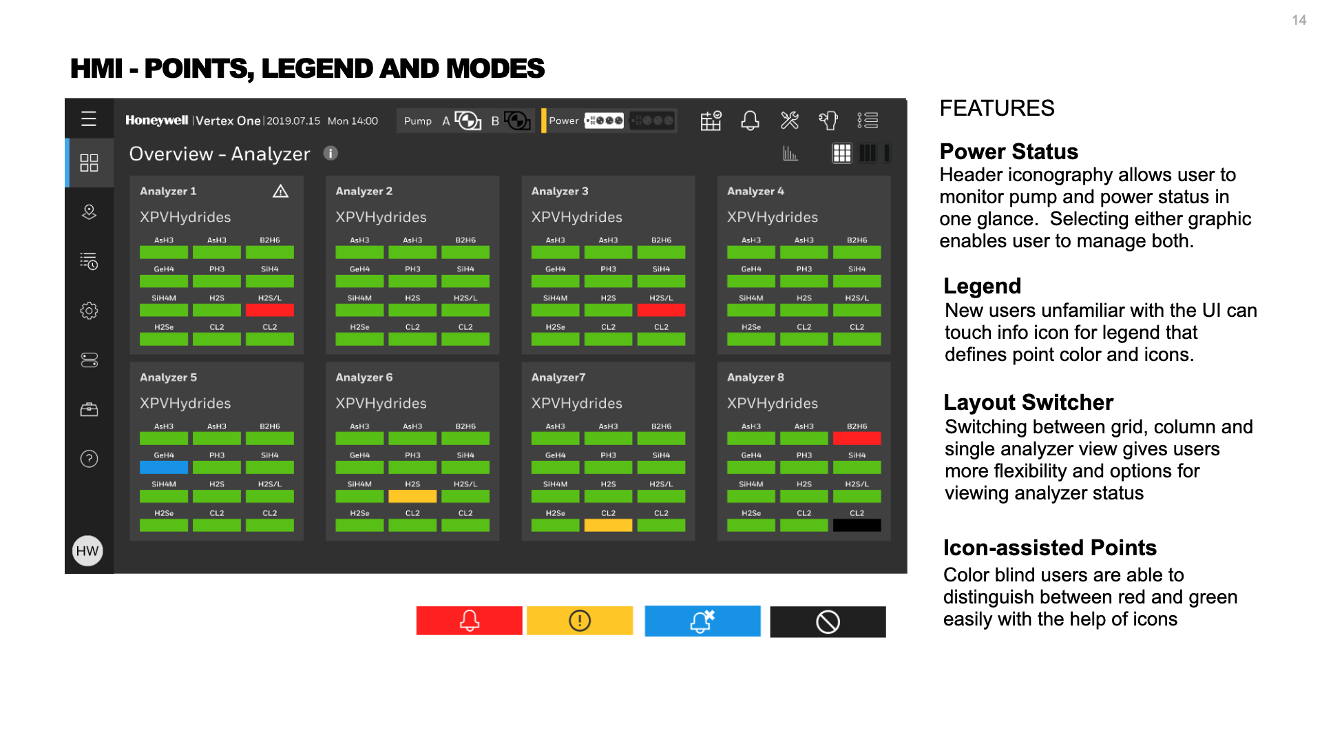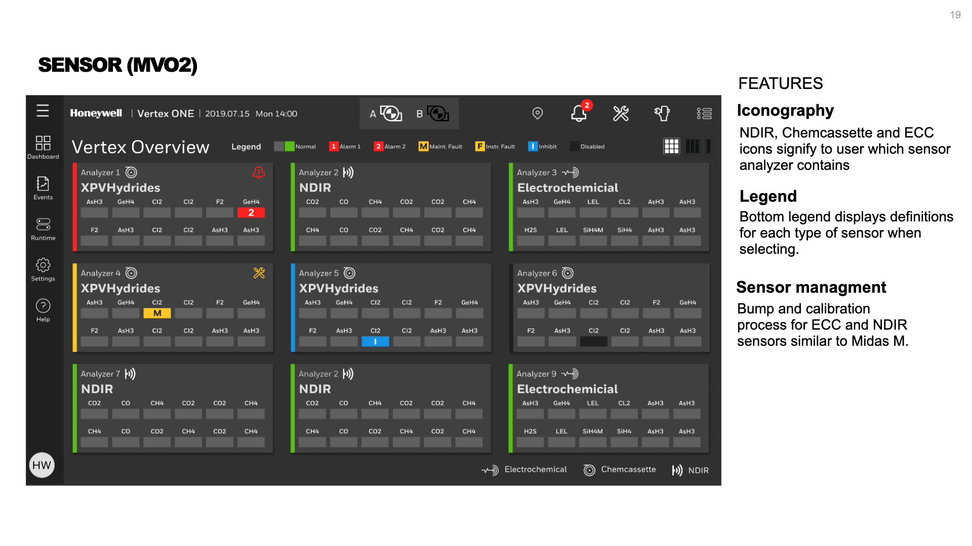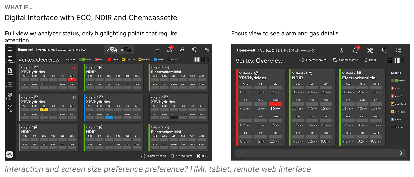 My primary task as Lead UX Designer was to modernize and reimagine the Vertex One HMI, effectively creating a touch interface for toxic gas detection that allow field maintenance technicians to quickly diagnose problems within the fab and prevent a critiical downtime or safety situation.