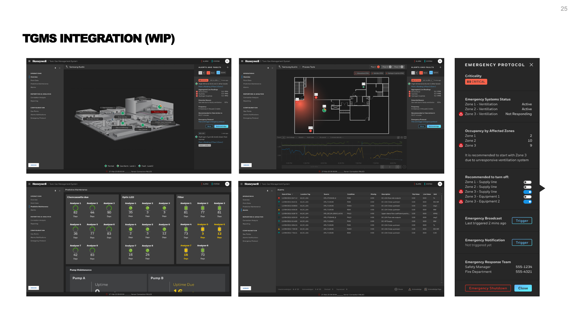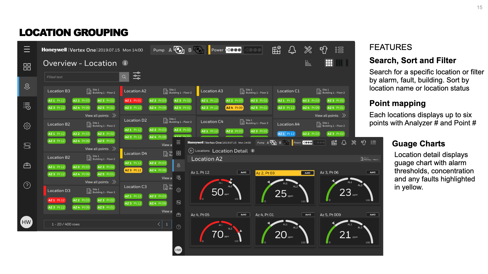 The core challenge involved designing the Human-Machine Interface (HMI) for Honeywell Vertex One, a critical industrial control system used for toxic gas detection in high-tech environments such as semiconductor fabs (e.g., Samsung Austin, Intel). In this environment, a gas leak is an invisible, fatal threat that demands split-second decisions and ensures near zero false positives.