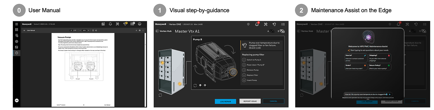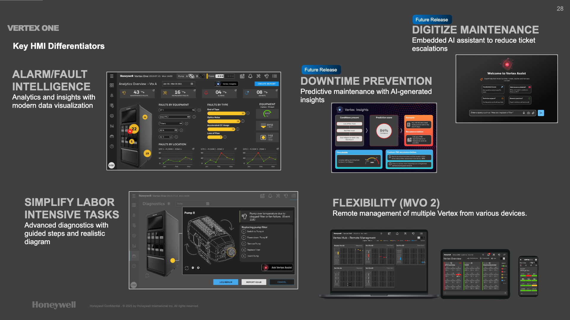• Vertex Assist conversational AI assistant for the embedded touchscreen, enabling technicians to quickly ask natural language questions for troubleshooting help and maintenance schedules directly at the machine, diverting support tickets
