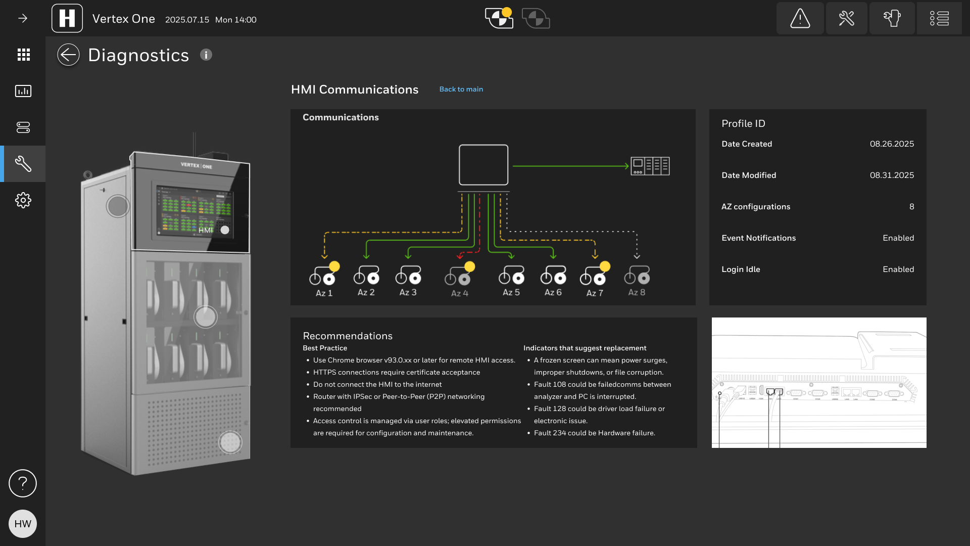 • Efficiency & Usability: The intuitive UI, combined with enhanced diagnostics and remote management concepts (Vertex Hub), significantly reduced the physical strain on technicians (less walking to machines) and streamlined labor-intensive service tasks.