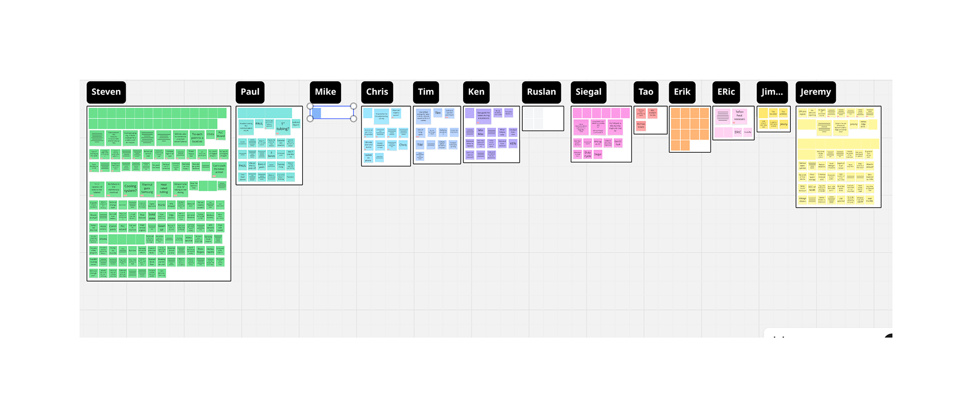 I organized all notes from the Day 1 and Day 2 workshops, first clustering them by the speaker’s name. Then, I used AI to group the notes by keyword and sentiment. Each note is now tagged by both name and keyword, giving us richer context and faster access to insights. From this process, clear themes have begun to emerge, including cybersecurity, hardware and configuration, maintenance and reliability, system integration, data management, user experience, operational efficiency, and training and support.
